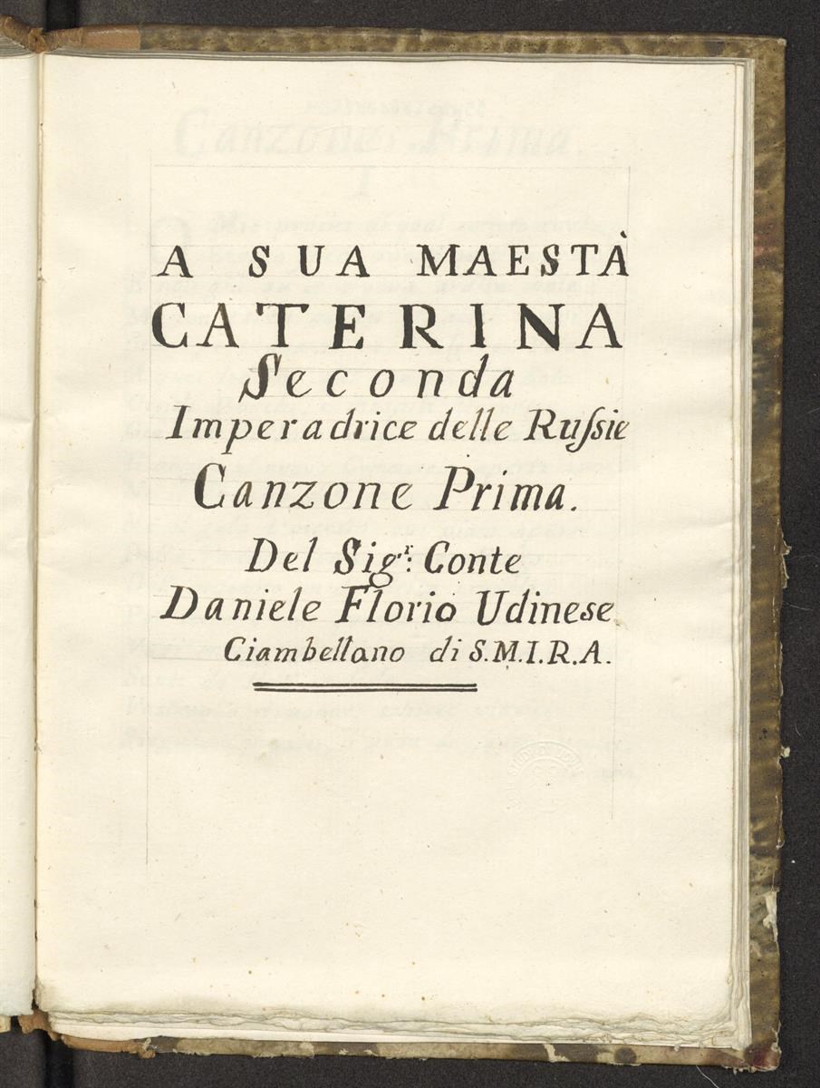 A sua maestà Caterina seconda imperadrice delle Russie canzone prima [-seconda] del sig.r conte Daniele Florio udinese ciambellano di S. M. I. R. A.