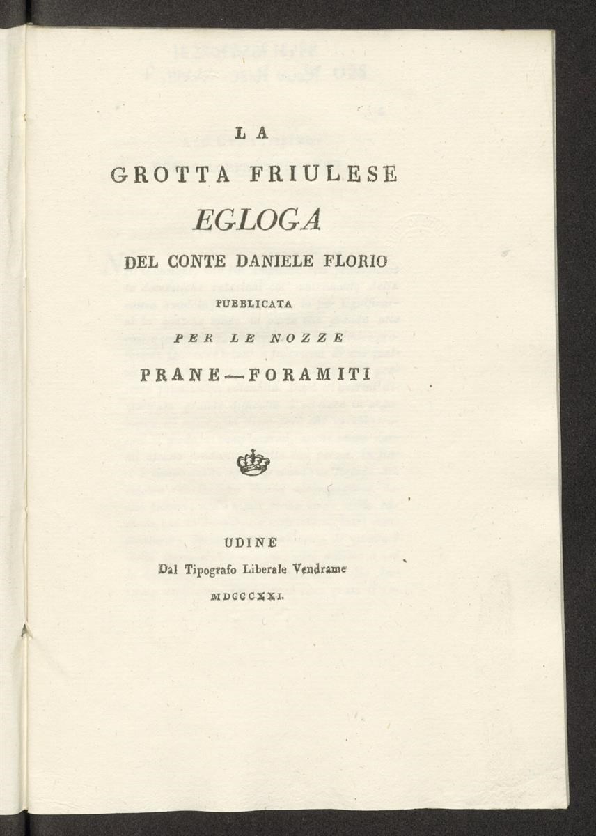 La grotta friulese egloga del conte Daniele Florio pubblicata per le nozze Prane-Foramiti