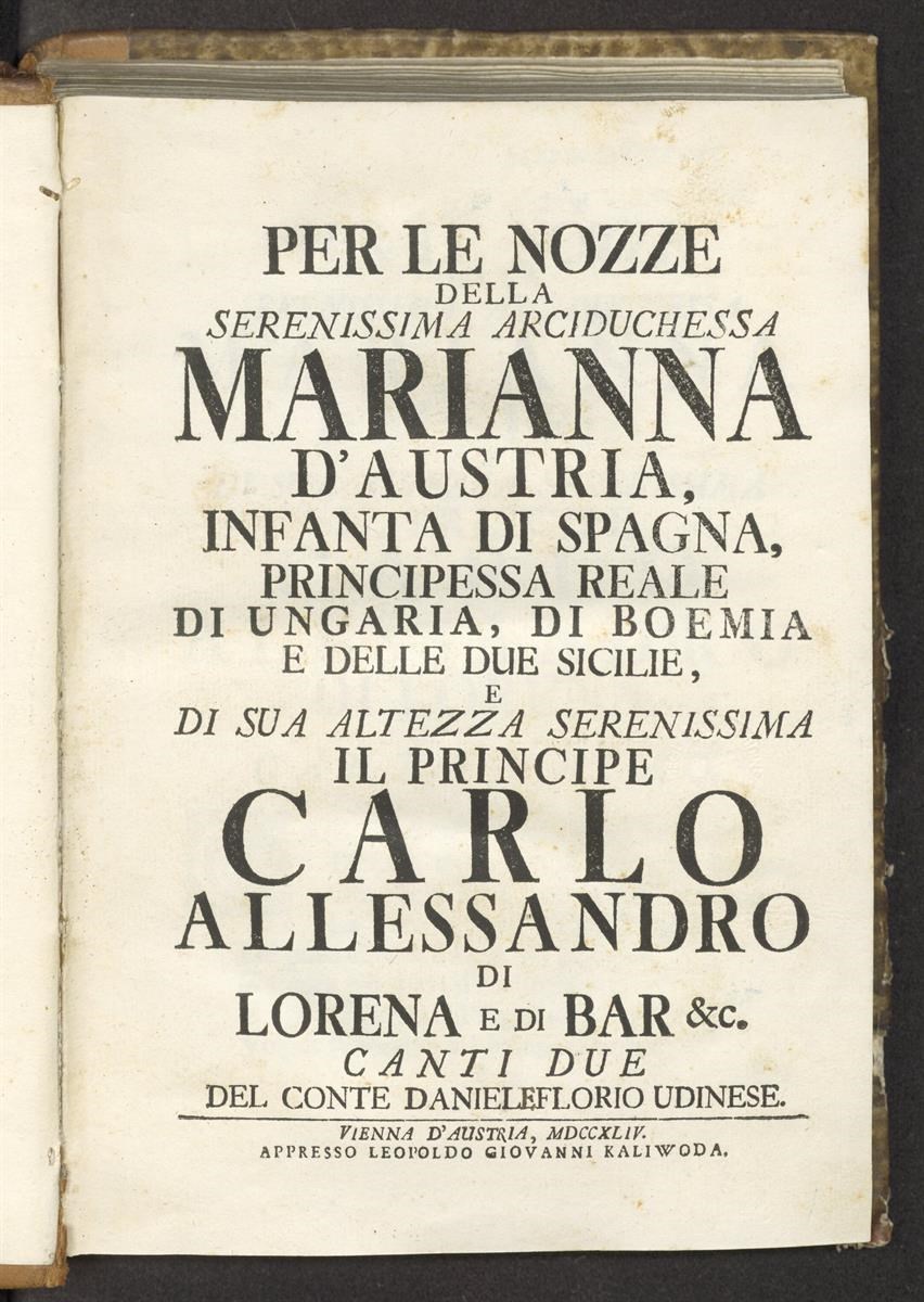 Vienna d'Austria: appresso Leopoldo Giovanni Kaliwoda, 1744.