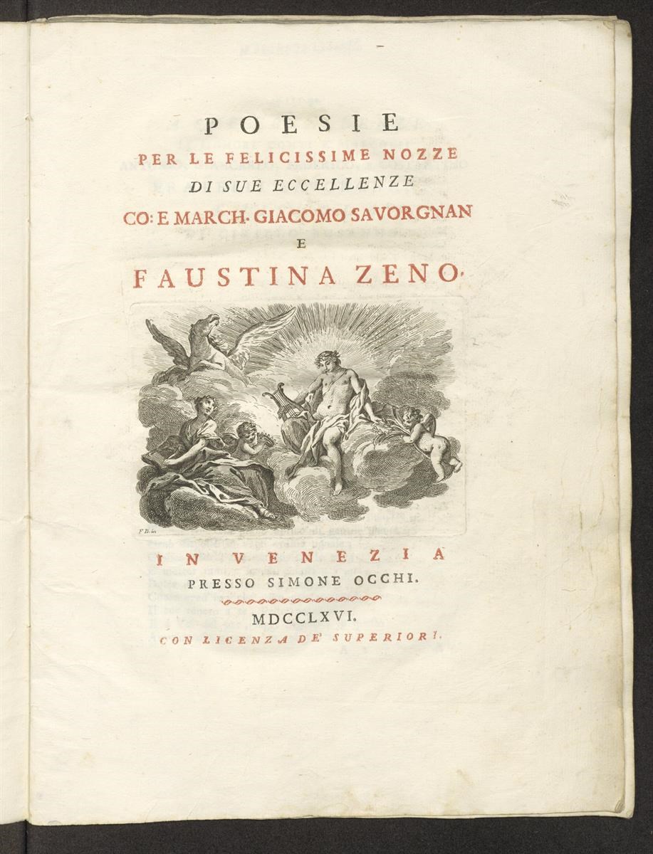 Poesie per le felicissime nozze di sue eccellenze co. e march. Giacomo Savorgnan e Faustina Zeno