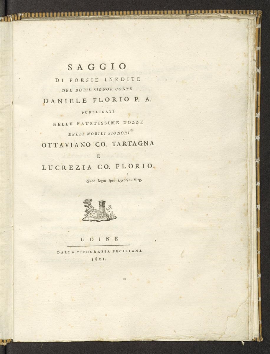 Saggio di poesie inedite del nobil signor conte Daniele Florio P. A. pubblicate nelle faustissime nozze delli nobili signori Ottaviano co. Tartagna e Lucrezia co. Florio
