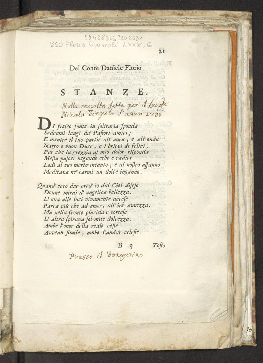 Contenuto in: A sua eccellenza il signor Niccolò Tiepolo luogotenente generale della Patria del Friuli componimenti d'alcuni patrizj udinesi detti in occasione della sua partenza.