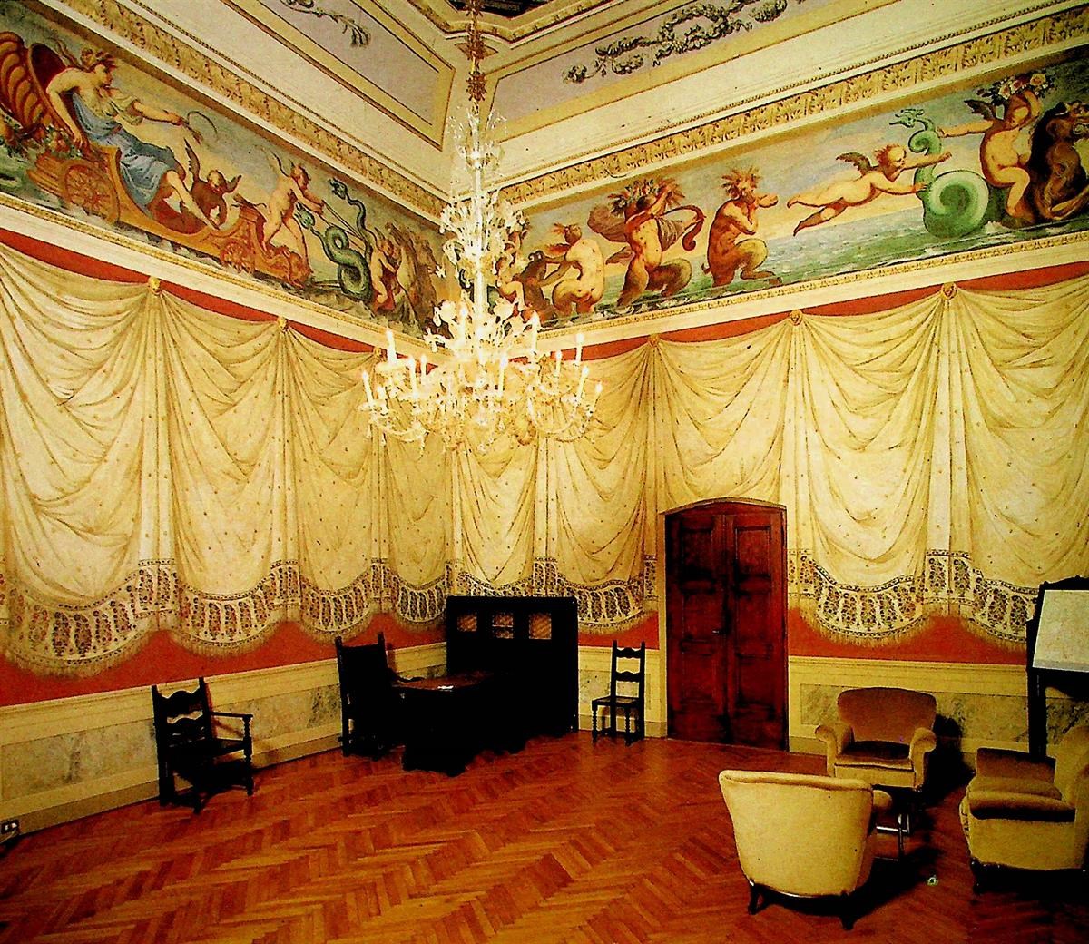 Dopo il passaggio di Napoleone, Margherita Antonini fece decorare una sala del palazzo con un intonaco su cui è dipinto uno scialle con api dorate, simbolo degli antichi re Merovingi e dell'operosità francese. Da allora la sala prende il nome di Sala dello scialle. Questo scialle fu donato a Margherita da Napoleone e la donna, che lo indossava nelle serate di gala, volle che servisse da modello per decorare la Sala.