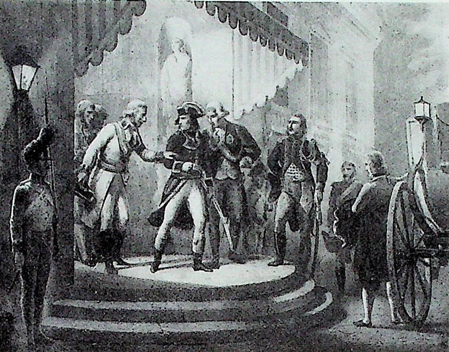 All'incidente seguì la brusca partenza di Napoleone dal palazzo accompagnata dalle minacce di far riprendere le ostilità entro ventiquattro ore, di cui è rimasta l'illustrazione di Couché.